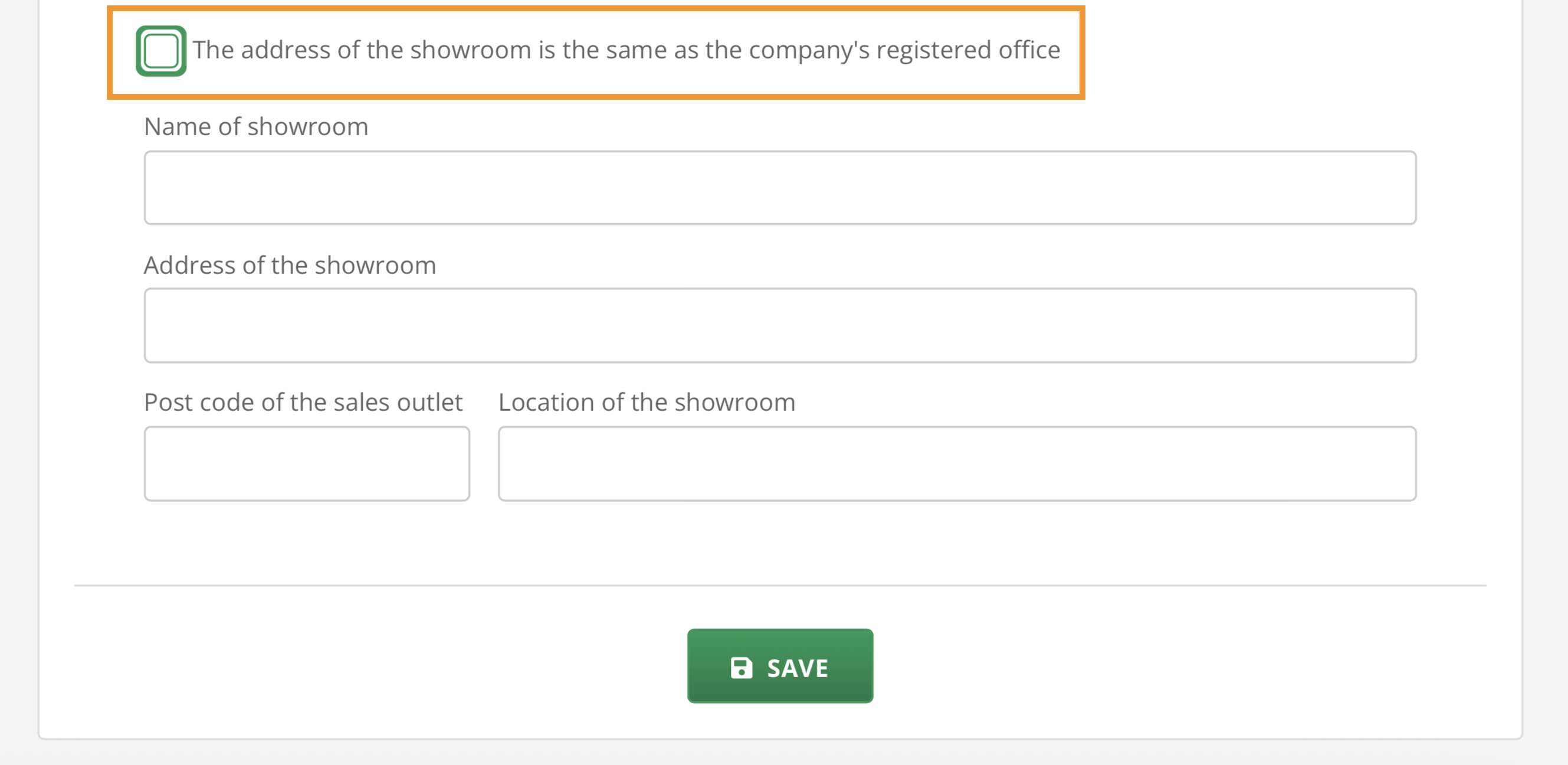 The official company name is not necessarily the name of the showroom under which you wish to operate. If the showroom address is different from the official company address, you can set this within the company profile settings.