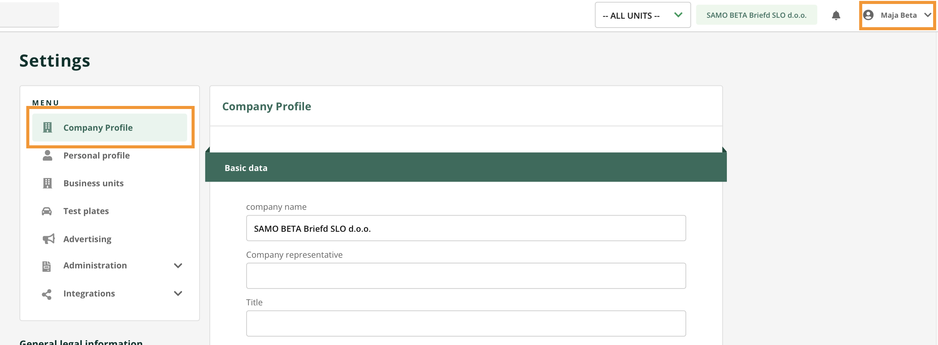 In this section you can edit all main company data used in various platform modules.