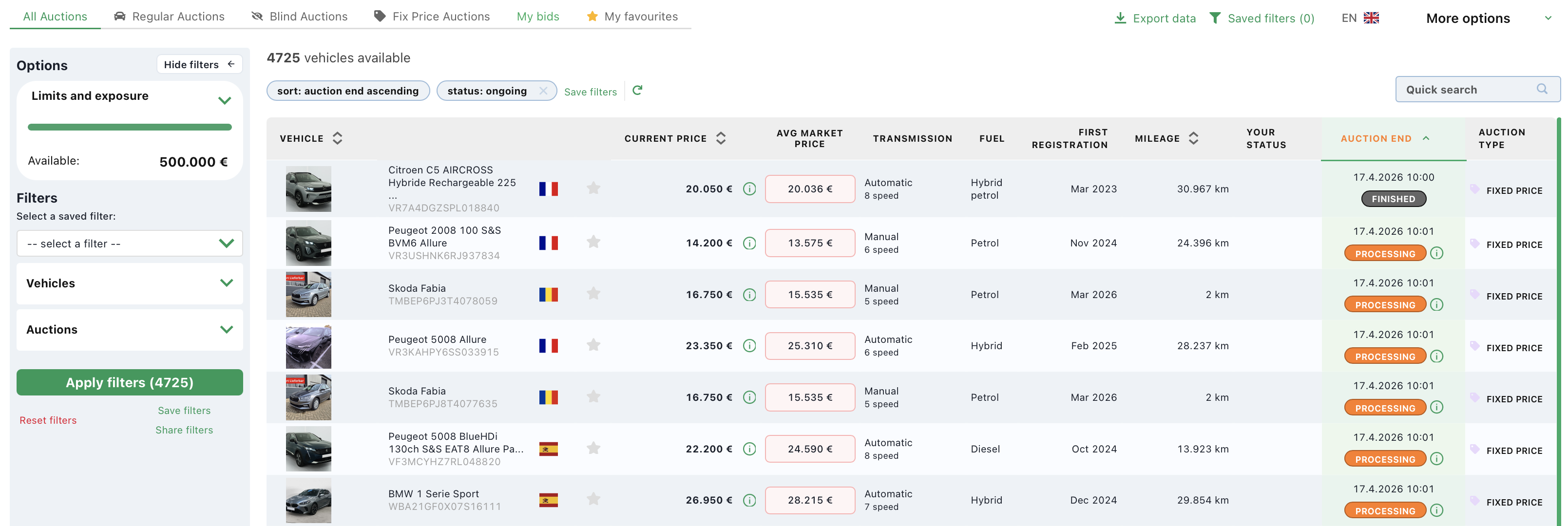 In the Vehicle Auctions module you can buy vehicles at auctions from all over Europe. Thousands of vehicles from over 40 brands are available every week.