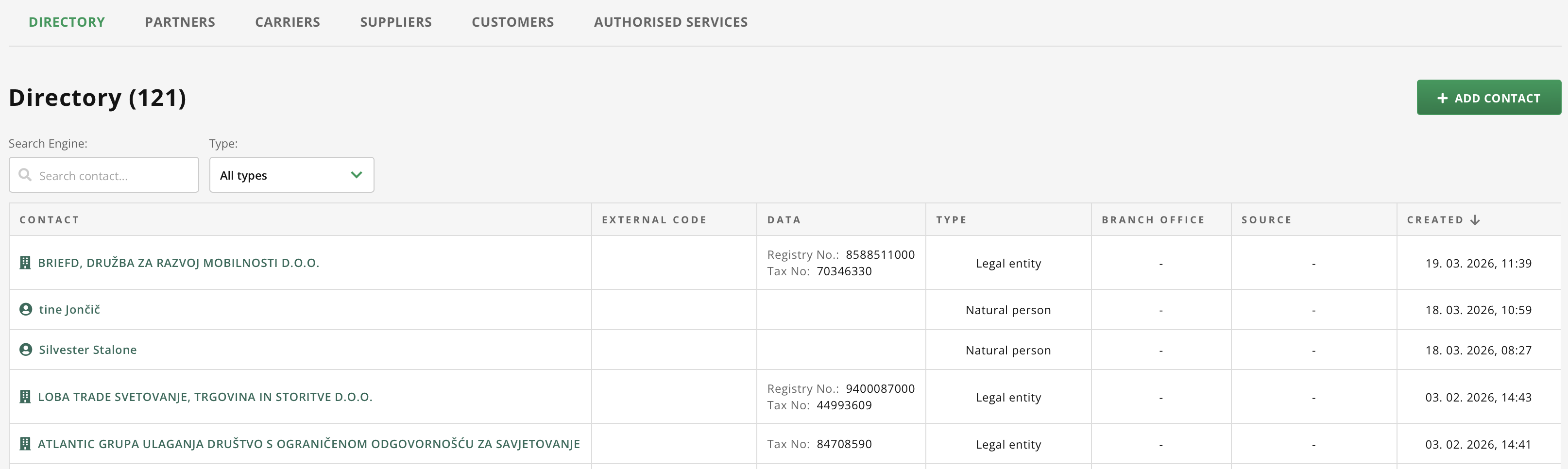 In the module Directory you'll find everything related to working with customers, partners, suppliers … Here you manage customer data, business history and contact information.