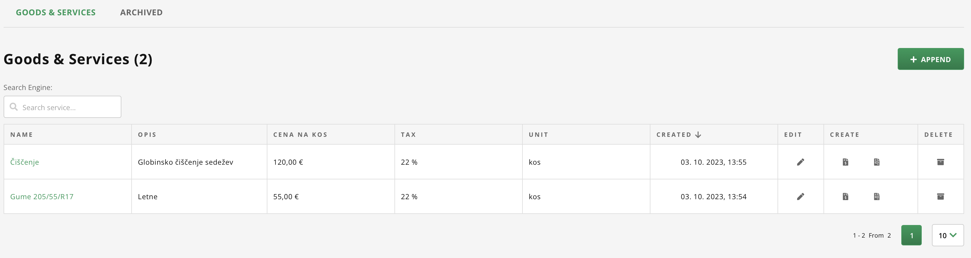 The Goods and Services module allows you to add products or services that you sell in addition to vehicles (e.g., vehicle preparation, additional equipment). These items can then be quickly used on invoices.