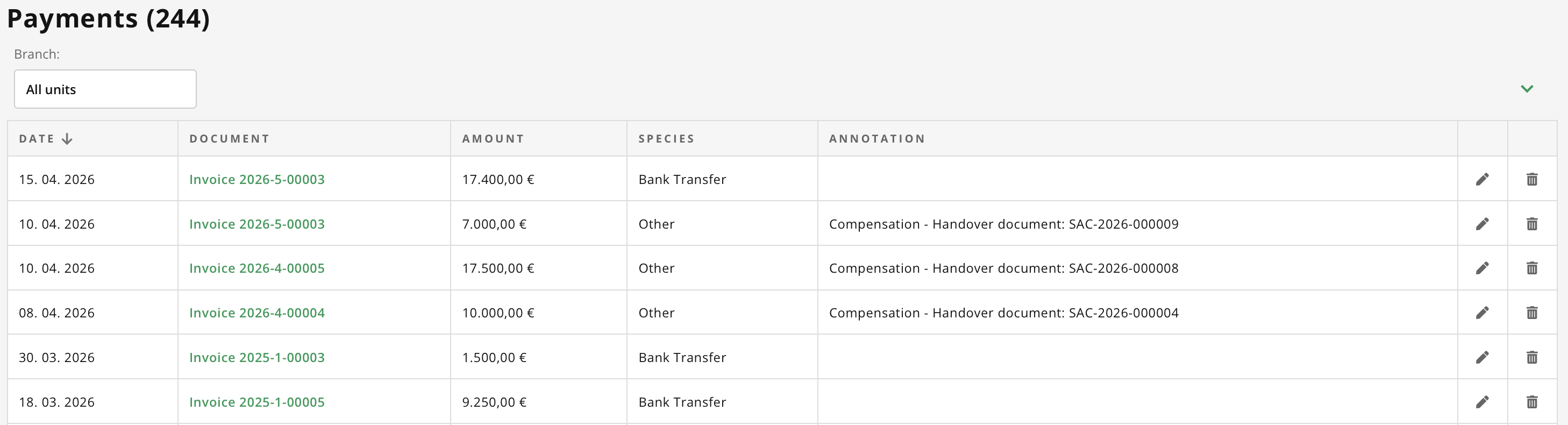 - dashboard with an overview of open invoices, receivables and payments for this month,
