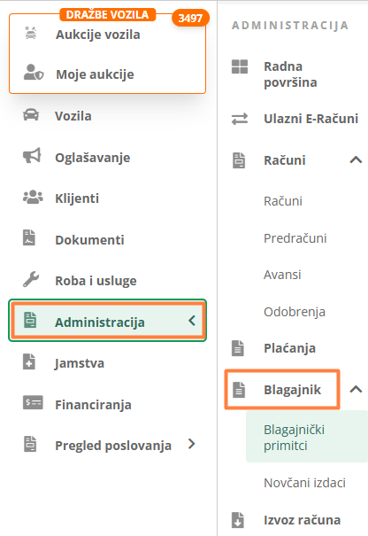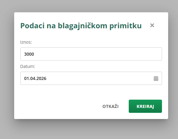 Kreirate ih klikom na Administracija u glavnom izborniku, zatim odaberete Blagajna i Blagajnički primici.