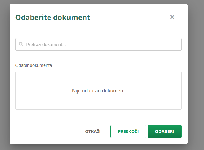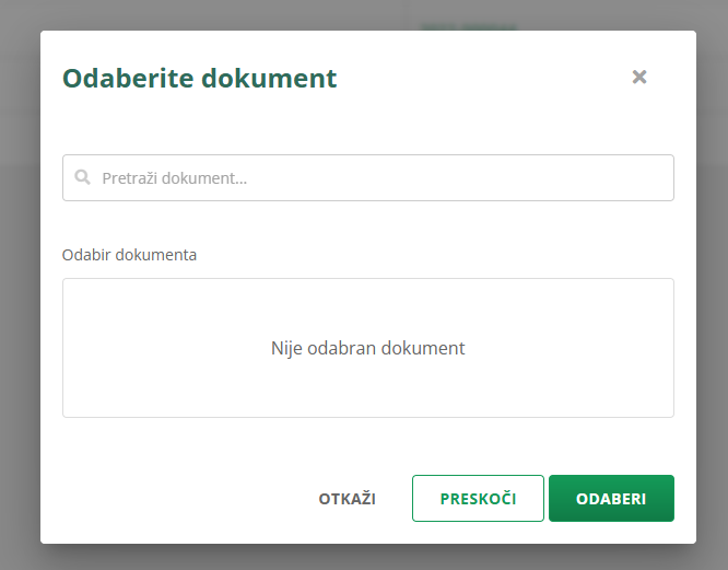 Otvorit će se skočni prozor u kojem odabirete dokument na koji ćete vezati novčani izdatak.