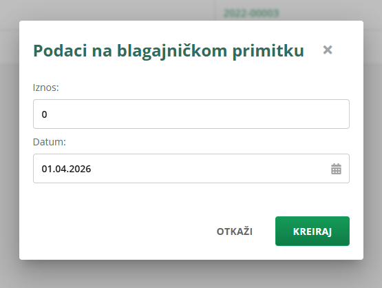 Na kraju unesite iznos i datum kada ste zaprimili blagajnički primitak.
