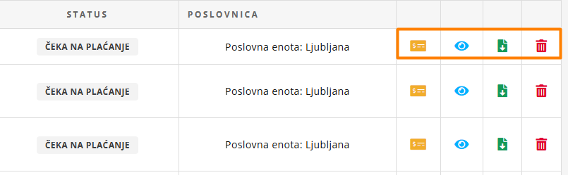 - crvena ikona storniraj račun, kojom storniraš račun.