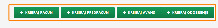 Sasvim na vrhu su četiri gumba, kojima se brzo može napraviti račun, predračun, avans ili odobrenje.