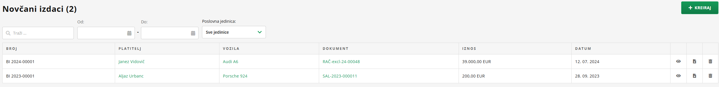 Drugi dio su Novčani izdaci, koji se izdaju kada iz blagajne nešto isplatiš u gotovini (npr. platiš čišćenje vozila u gotovini).