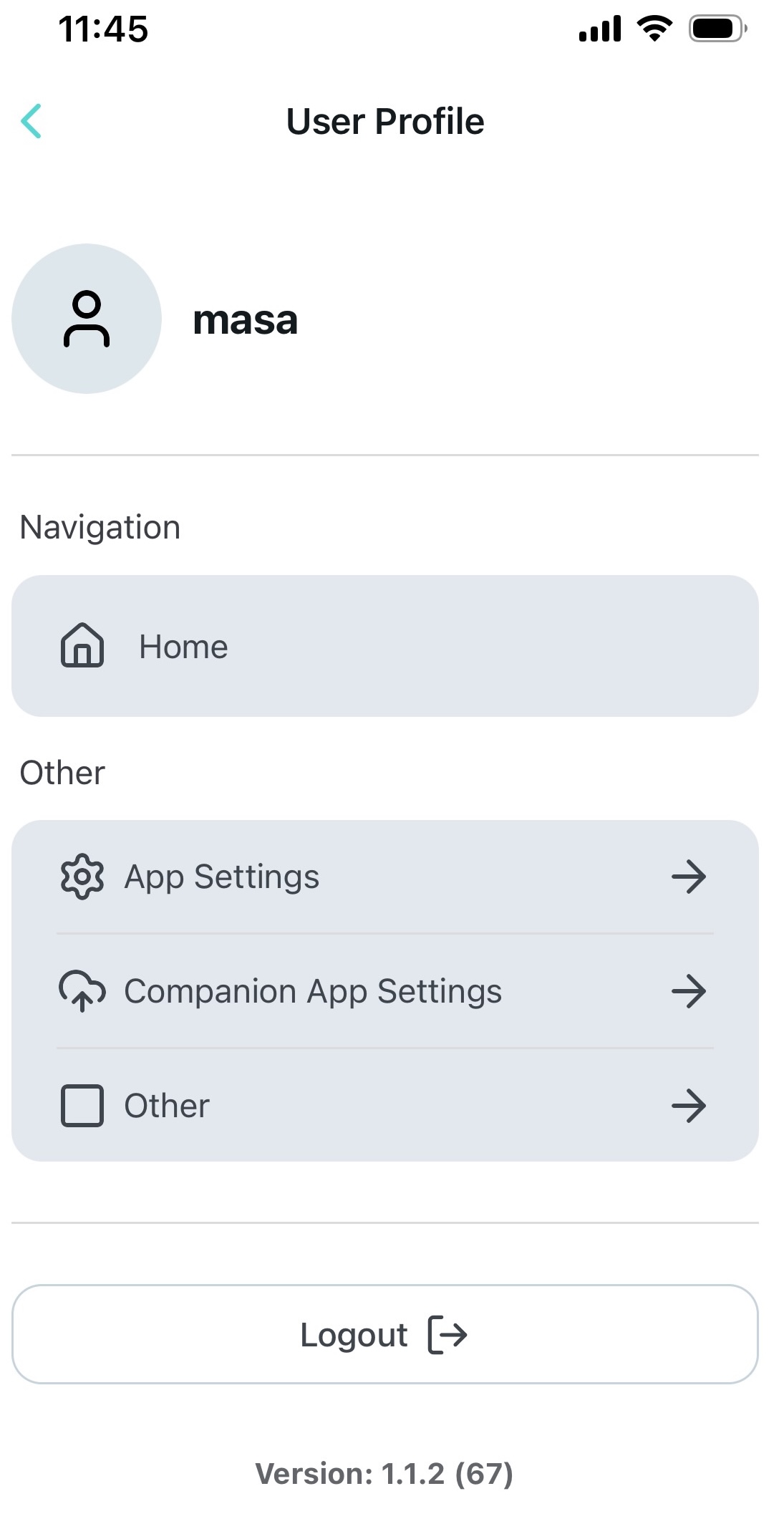 Na dnu zaslona prikazana je verzija aplikacije (važno pri prijavi problema) i gumb za odjavu iz aplikacije.