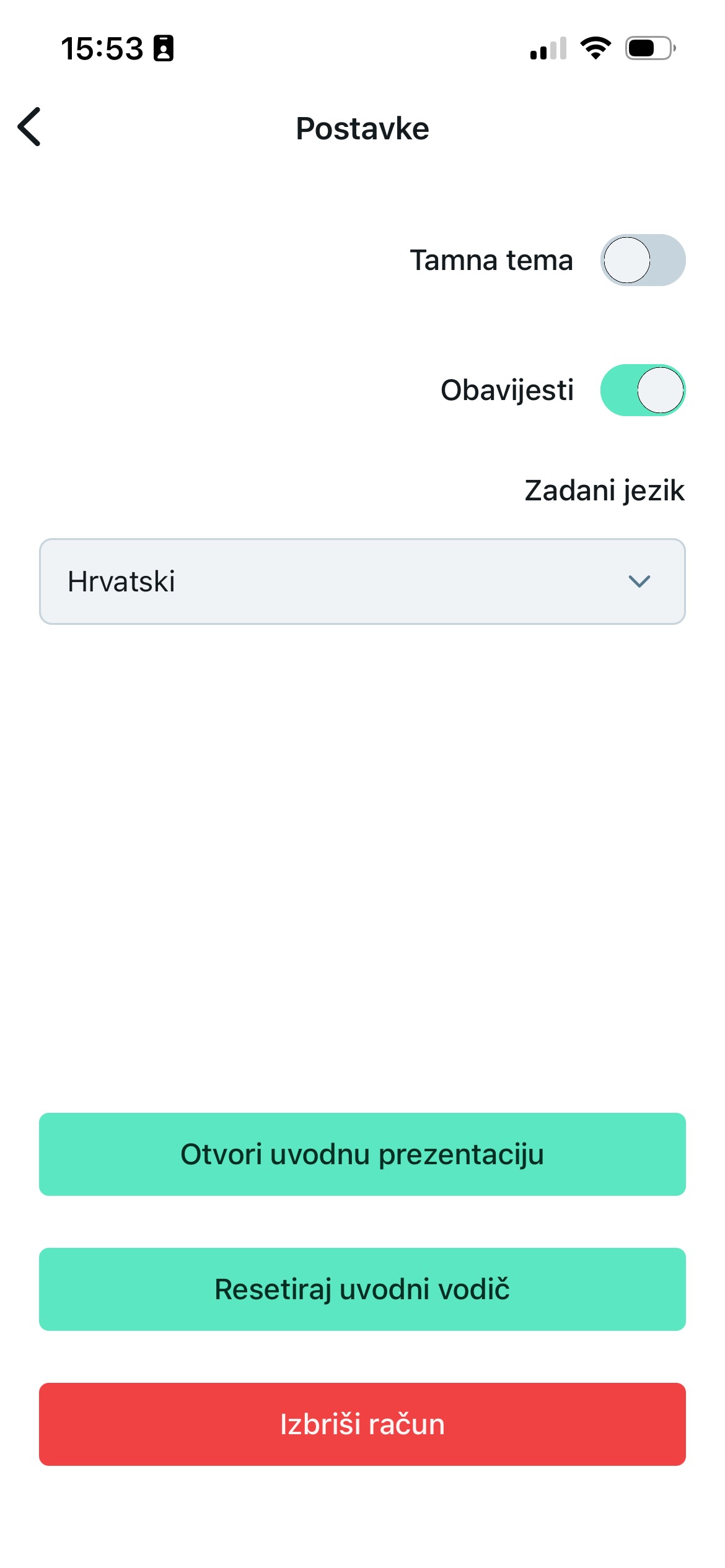 - App settings (postavke aplikacije)