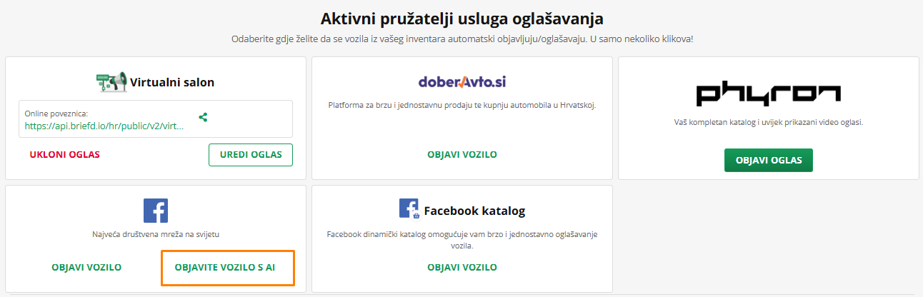- Kliknite Facebook katalog i gumb OBJAVITE VOZILO S AI.