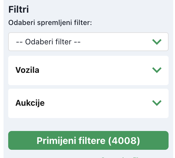 Aukcije vozila - filteri