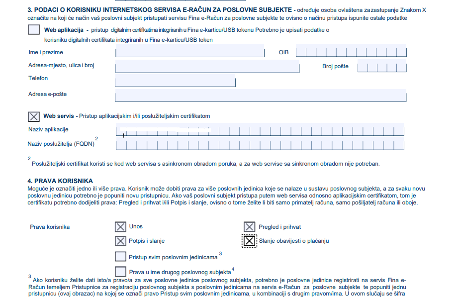 Nakon što završite prethodni korak, morate popuniti još Pristupnicu za internetski servis Fina e-račun.