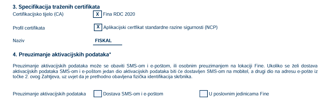 - Na svoje računalo preuzmite Zahtjev za izdavanje certifikata za fiskalizaciju.