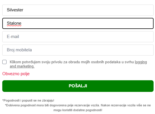Naravno, važna je zanimljivost vaše ponude (npr. besplatne zimske gume, besplatna vinjeta, popust pri kupnji …), što će biti zanimljivija, dobit ćete više kontaktnih podataka.