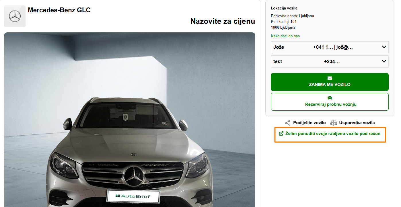 Kupac vam također može javiti da ga zanima neko vozilo i da bi svoje rabljeno vozilo želio dati pod račun. To čini pomoću obrasca Želim dati svoje rabljeno vozilo pod račun.