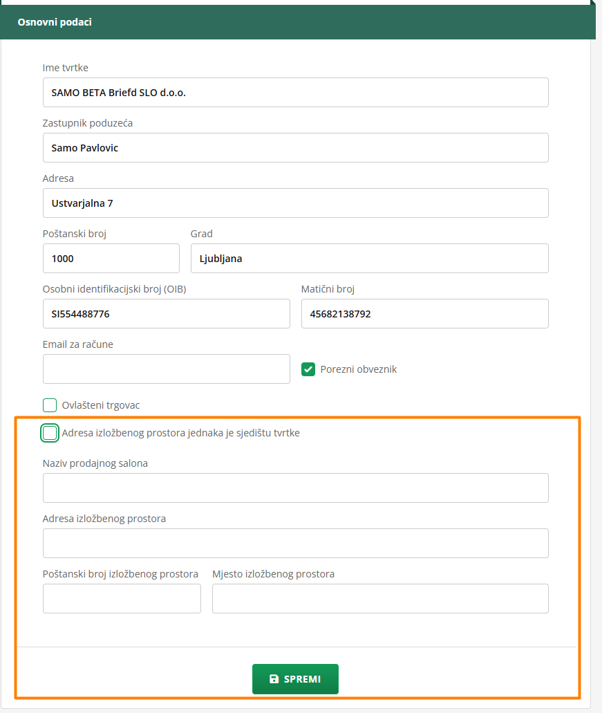 Kada dodate sve podatke, ne zaboravite kliknuti na SPREMI.