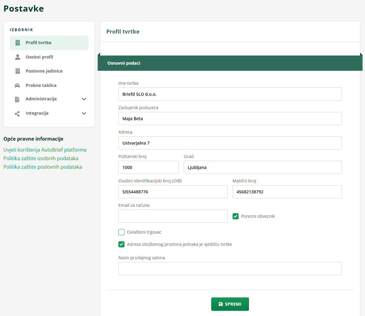 Ako ne želite da naziv prodajnog salona bude isti kao naziv tvrtke, to možete jednostavno urediti unutar postavki AutoBrief računa.