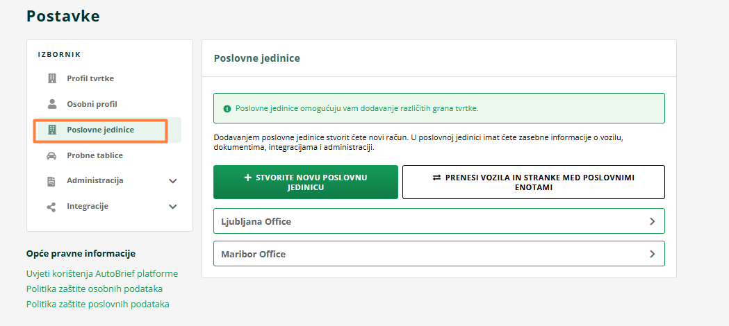 Ako imate različite poslovne jedinice, tada je moguće oglašavati i za svaku jedinicu zasebno. Dakle, vozila koja imate u jednoj jedinici možete oglašavati samo za tu poslovnu jedinicu.