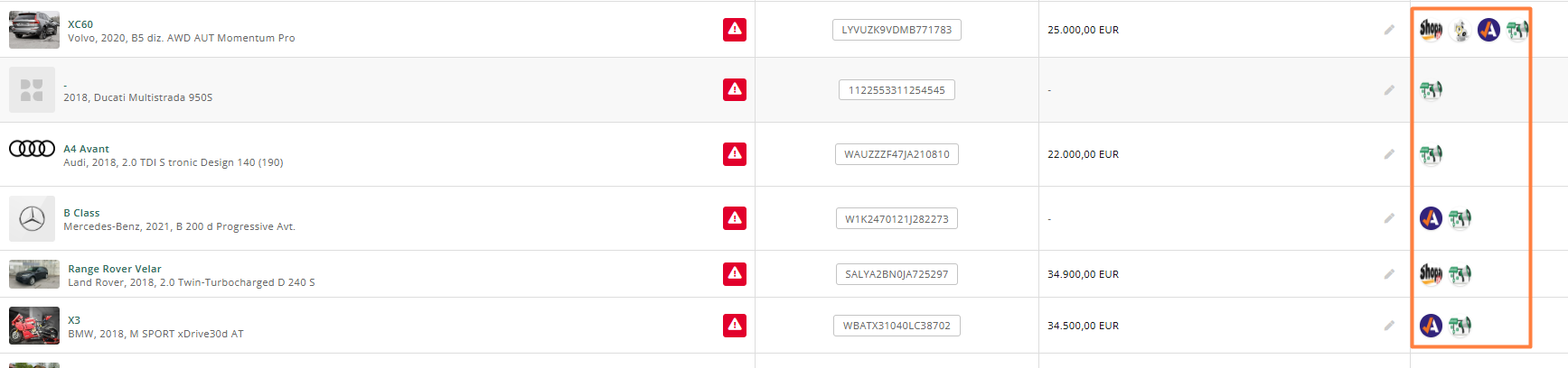 - Također provjerite imate li aktivnu integraciju s platformom na kojoj želite objaviti vozilo (npr. DoberAvto).