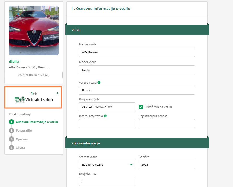 Opisi se ne prenose automatski iz kartice vozila, već ih je potrebno posebno unijeti i ažurirati u kartici Oglašavanje