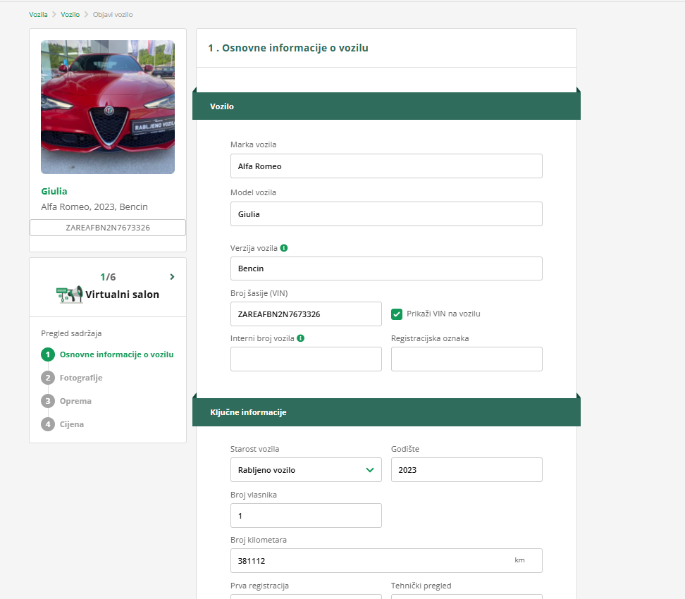 Provjerite jeste li nakon unosa novih podataka o vozilu na platformi AutoBrief osvježili sve oglase koji se odnose na to vozilo. Kako to učiniti, pročitajte ovdje.