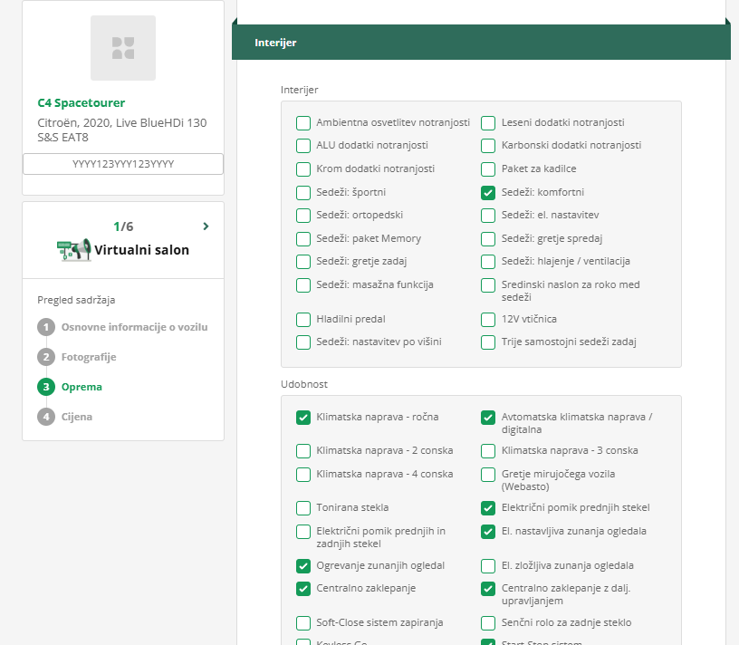 U četvrtom koraku možete unijeti još više podataka o opremi vozila, koje će vidjeti potencijalni kupci. Podaci nisu obvezni.