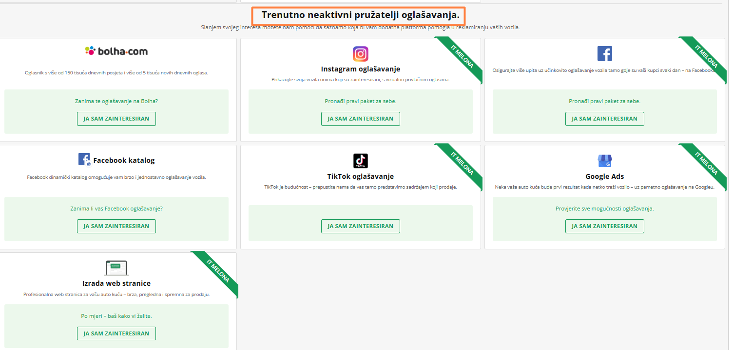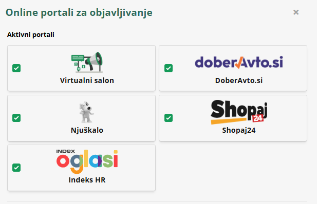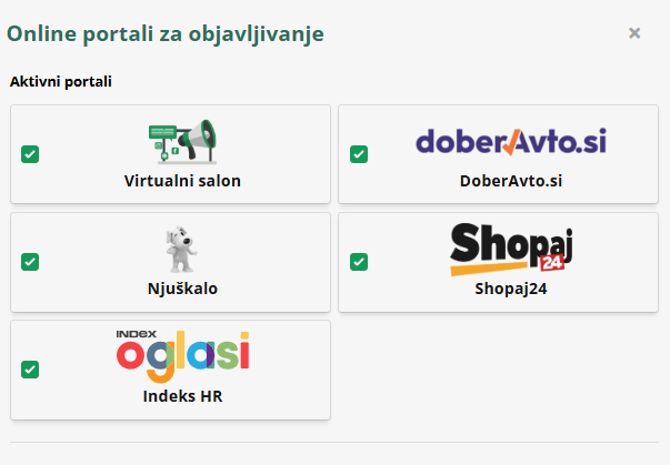 - Među ponuđačima odaberite portal ili više portala, na kojima želite oglašavati ovo vozilo.