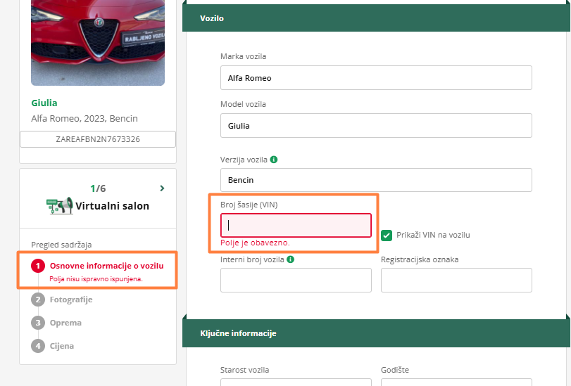 Važno: Ako ne ispunite traženo polje, nećete moći objaviti oglas. Na sve to vas upozorava crvena boja i natpis - polja nisu ispravno ispunjena.