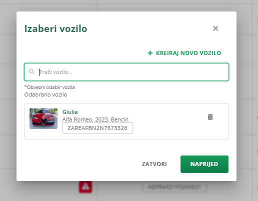 - Odaberite vozilo koje želite oglašavati.