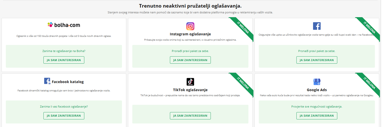 Za svaku od poveznica najprije ćete morati imati korisnički račun te na pojedinom vozilu najprije kliknuti Oglašavanje>Digitalno te gumb ZANIMA ME