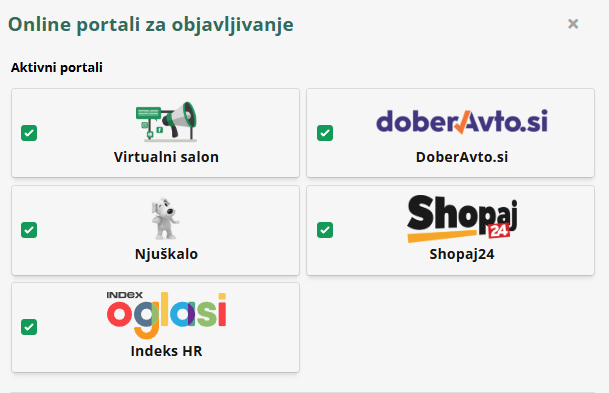 - Odaberite jedan ili više portala/mjesta na kojima želite objaviti vozilo.