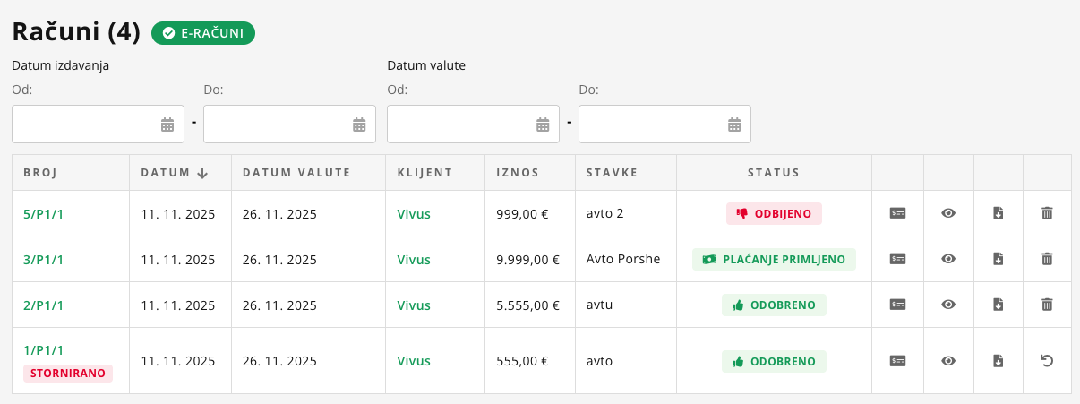 - izdavanje računa: računi, e-računi predračuni, avansi i odobrenja