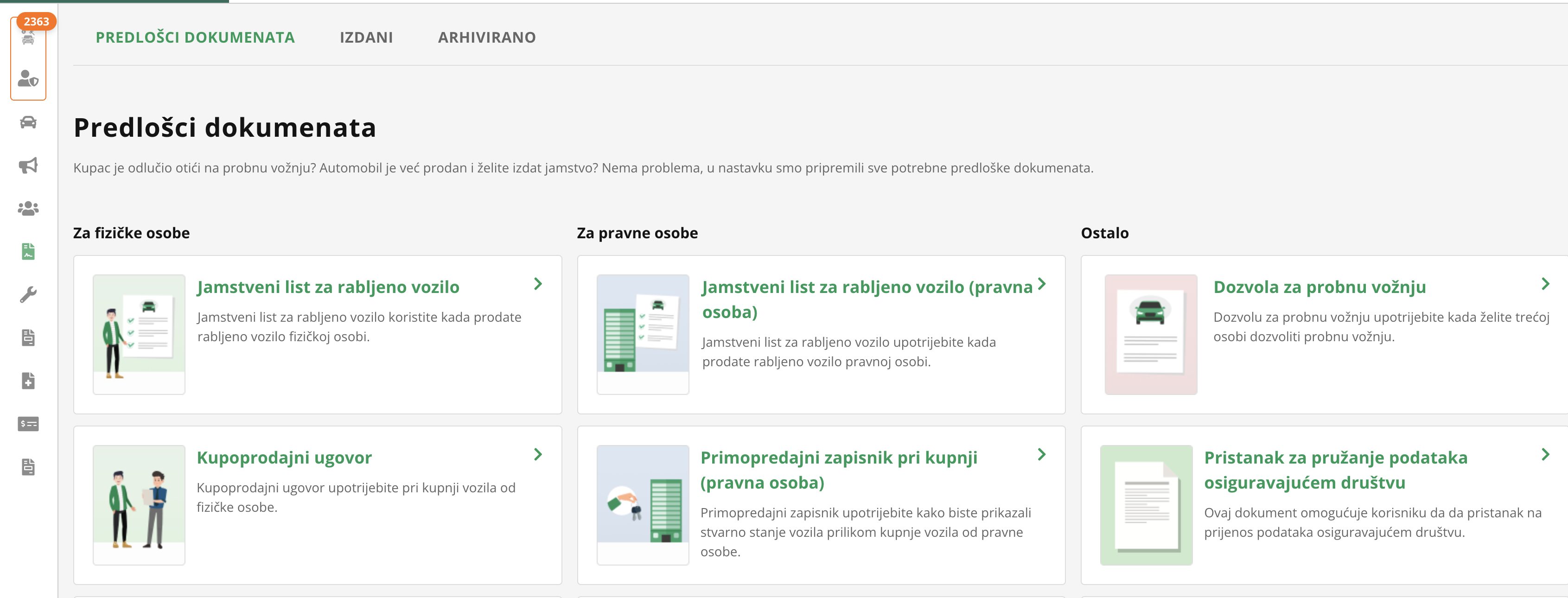 Među Dokumentima se nalaze svi aktivni dokumenti i predlošci za njih: