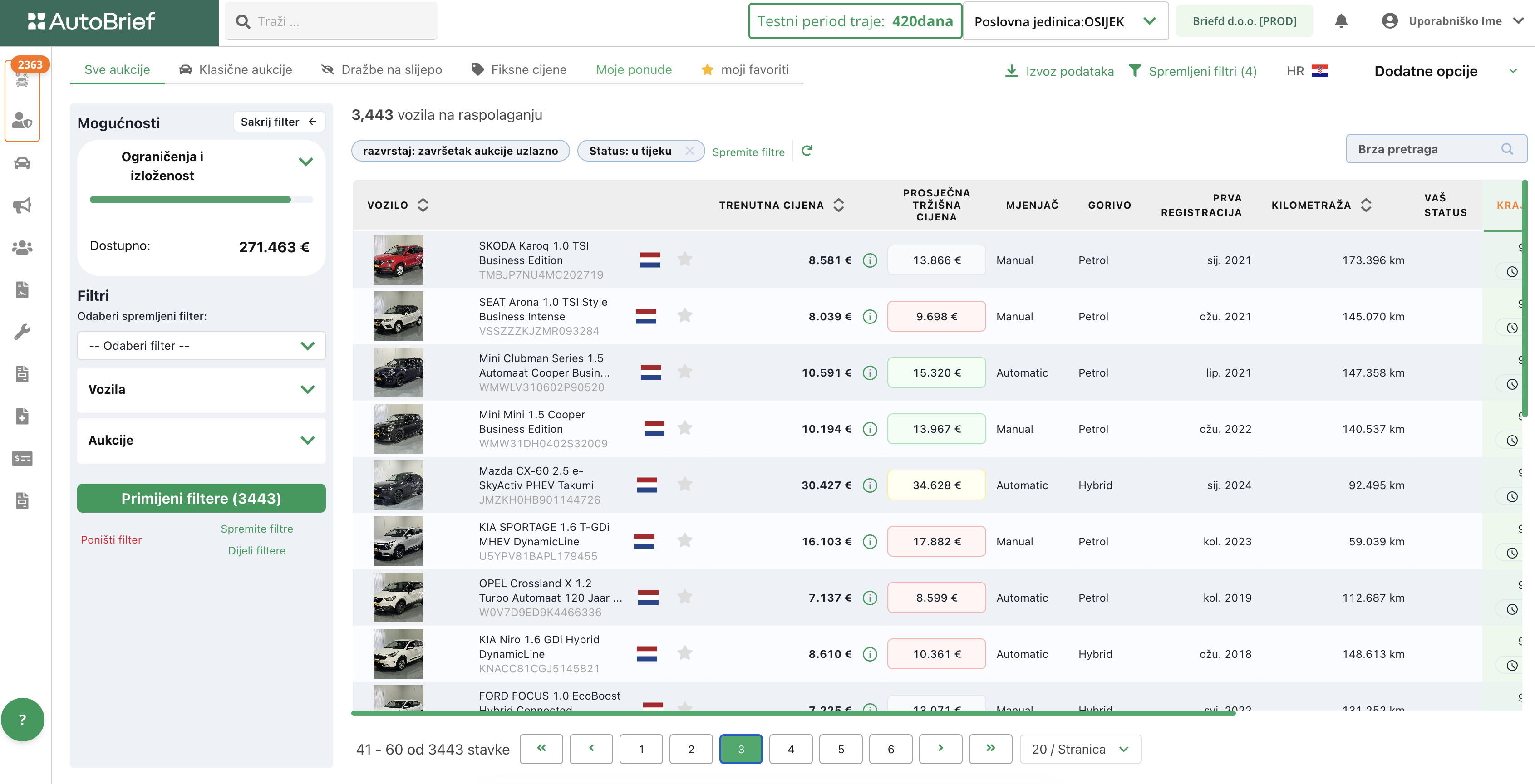 - filtriranje po marki, modelu, državi, kilometraži, cijeni ili vrsti aukcije