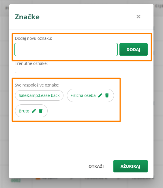 Oznaku stvarate tako da u stupcu OZNAKE, kliknete na ikonu olovke.