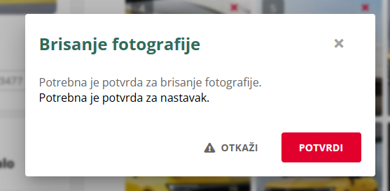 Ako želite objaviti samo tri fotografije koje smatrate potrebnima za oglas, onda kliknite na znak X pored fotografije, koju ne želite objaviti na portalu. Pojavit će se skočni prozor koji traži dodatnu potvrdu za brisanje fotografije. Kliknite na POTVRDI.