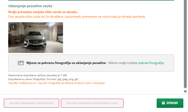 Klikni na gumb UREDI FOTOGRAFIJE. Tamo je, pored ostalih funkcionalnosti, i dio Uklanjanje pozadine vozila