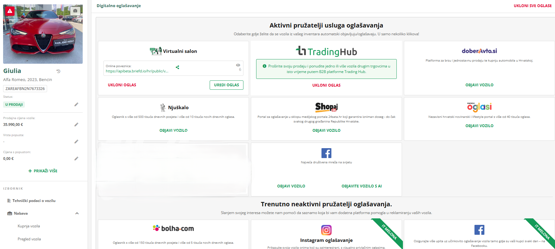 OGLAŠAVAJ VOZILO, kojim možete vozilo izravno povezati s oglasnim portalima i društvenim mrežama. Više o oglašavanju pronađite ovdje.