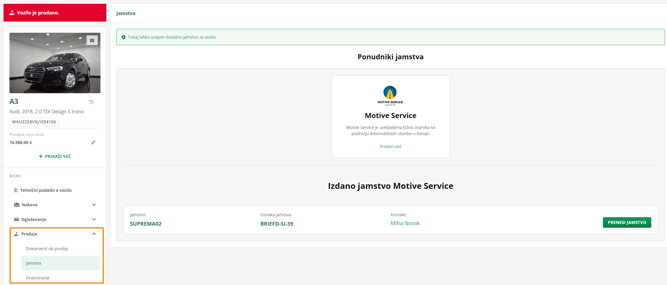 V kolikor pa si za vozilo izdal še jamstvo in / ali financiranje, pa lahko do teh vlog dostopaš v kategoriji Prodaja - Jamstva / Financiranje.