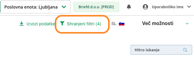 Shranjeni filter se bo prikazal med filtri na vrhu.