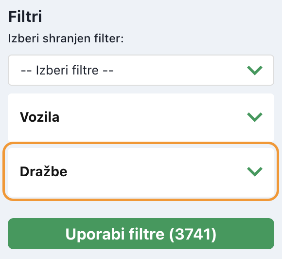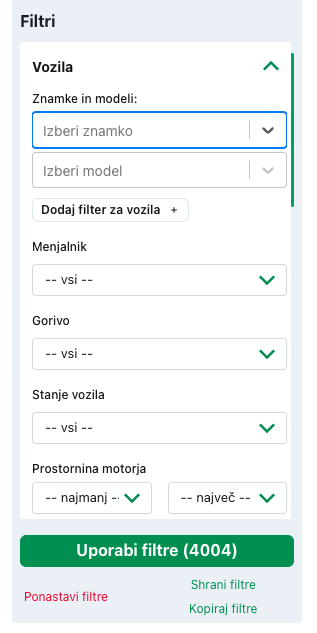 Pri iskanju vozil lahko uporabiš naslednje filtre:
