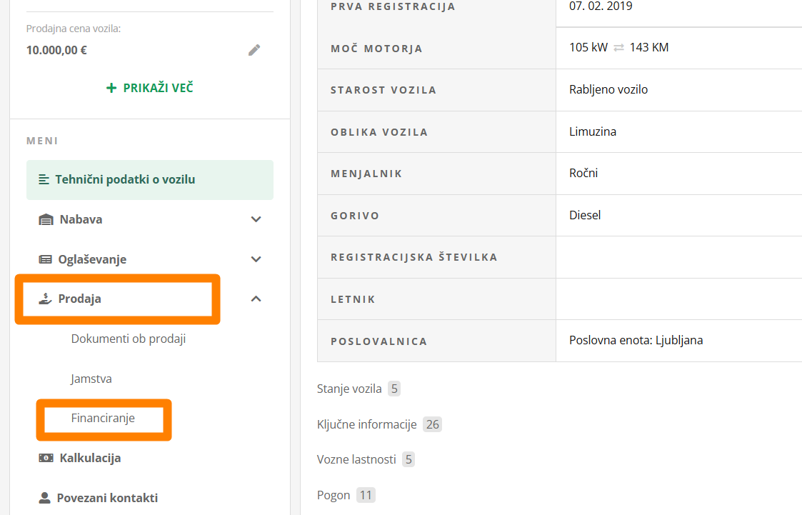 Najlažje je začeti na kartici vozila, saj boš na tak način najlažje financiranje vezal direktno na vozilo.