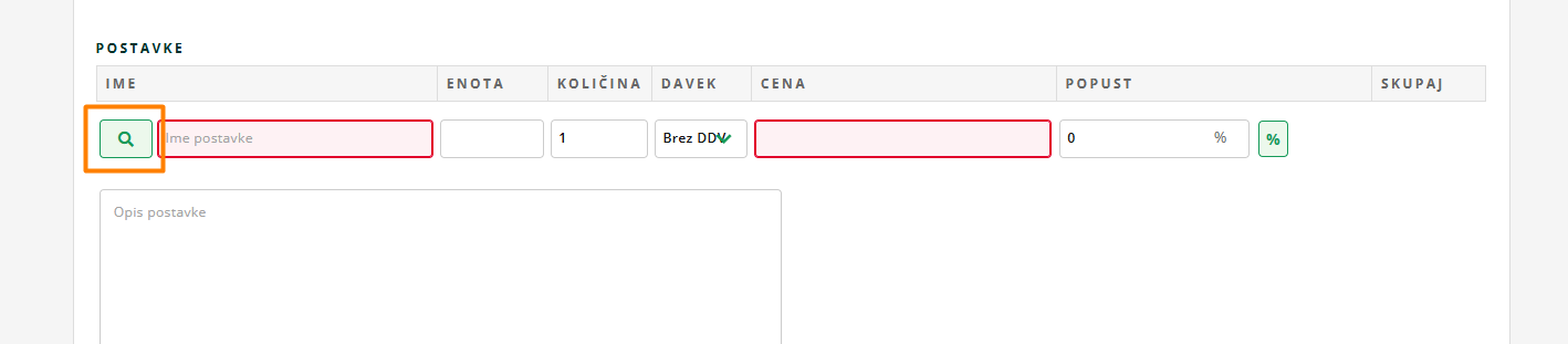 S klikom na gumb UREDI je mogoče urejati vsak del avansnega računa, torej tudi postavke in ceno.