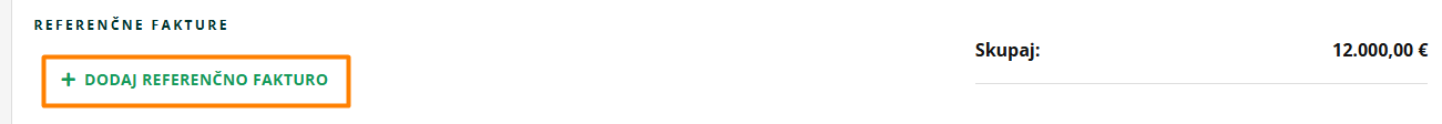 Spodnji del računa je sestavljen iz možnosti dodajanja referenčne fakture, ki jo po potrebi dodaš s klikom na gumb + DODAJ REFERENČNO FAKTURO.