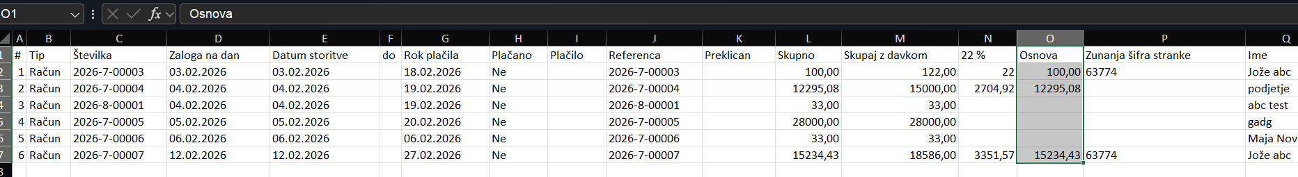 Izvoz faktur znotraj modula administracija