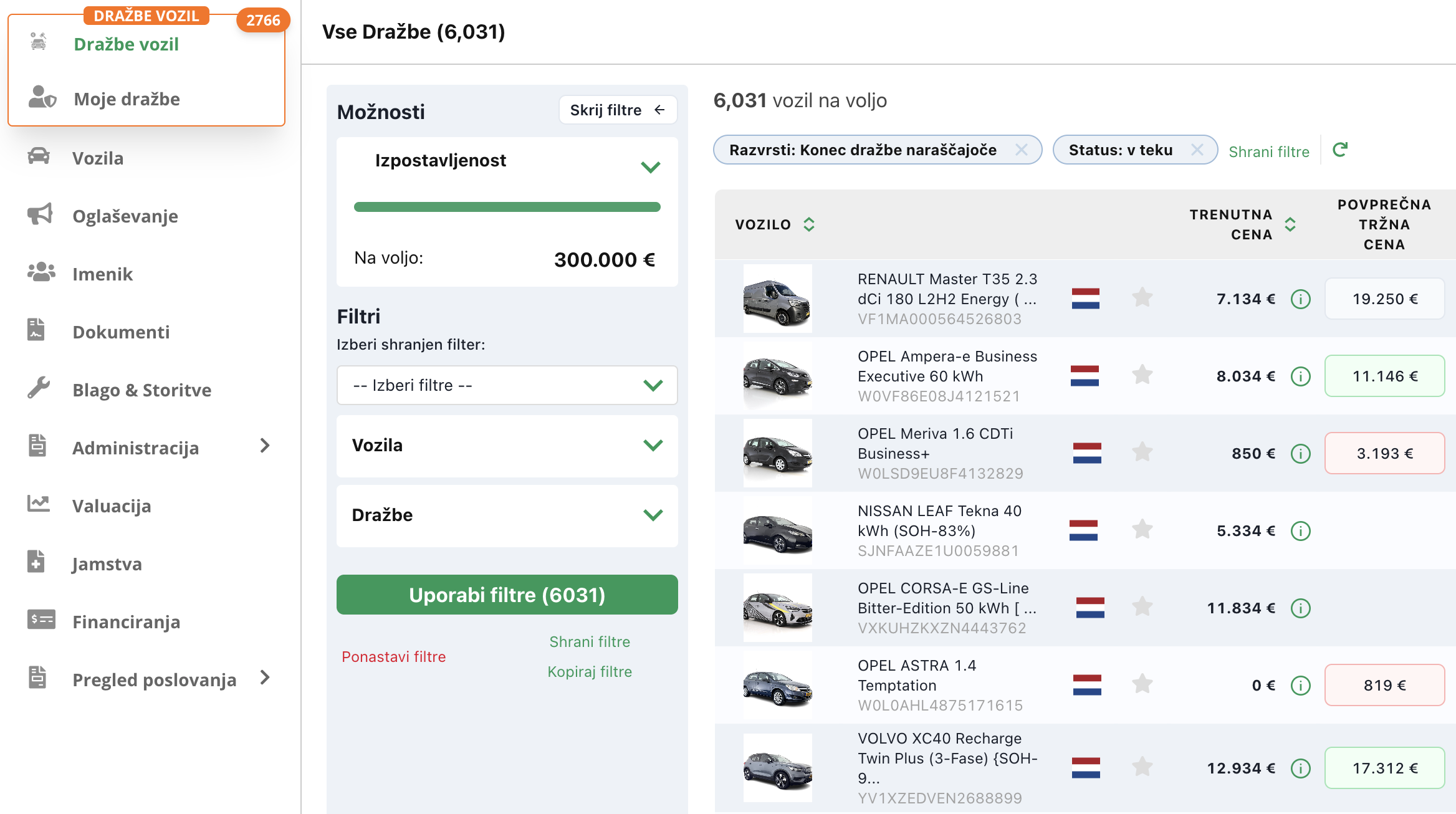 Ko so osnovni podatki urejeni, predlagamo aktivacijo modula Dražbe vozil. Aktivacija traja nekaj dni, saj je potrebna odobritev podjetja. Po odobritvi boš imel vsak dan dostop do več tisoč vozil na dražbah iz celotne Evrope.