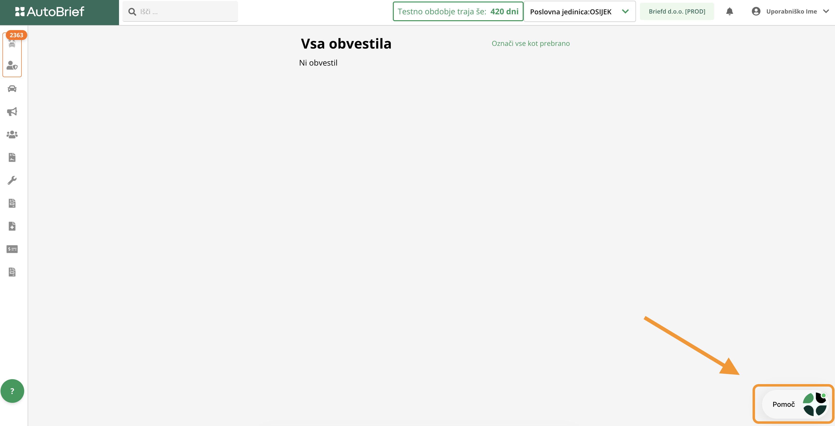 Okence za pomoč najdeš v desnem spodnjem kotu zaslona. Tu smo zate pripravili priročnike, novice in navodila uporabe. Če potrebuješ dodatno pomoč, lahko stopiš v stik tudi z našo ekipo.