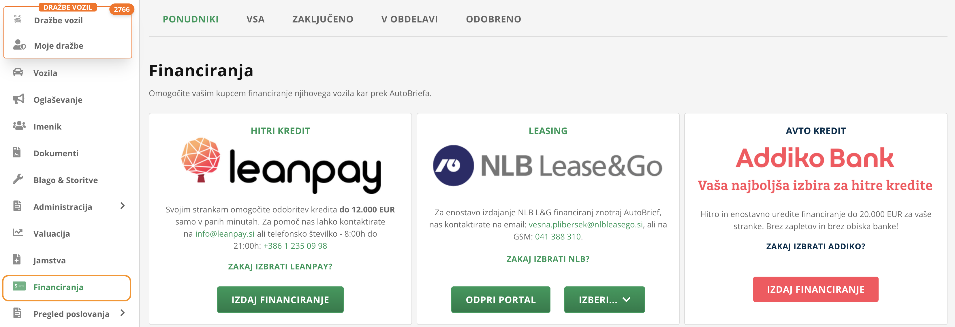 Naši partnerji (NLB Lease&Go, Addiko Bank, Leanpay) omogočajo hitro izdajo financiranja, a je za to potrebna predhodna aktivacija.