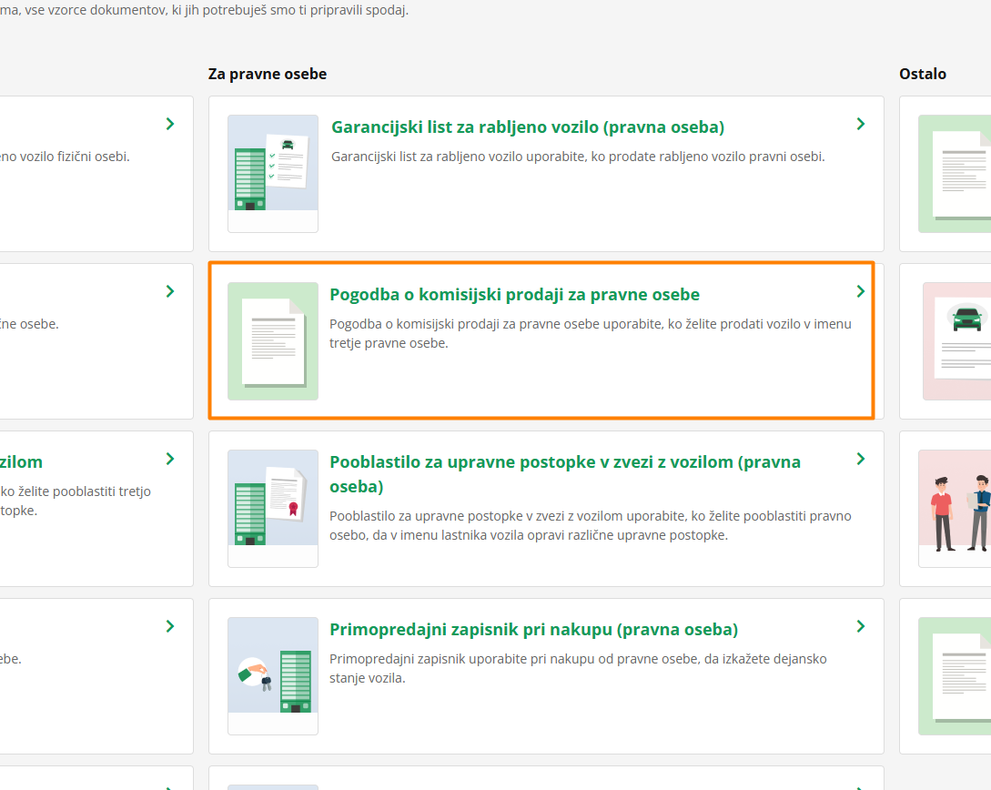 V glavnem meniju izberi modul Dokumenti, nato izberi Komisijska pogodba ob prodaji za pravne osebe.